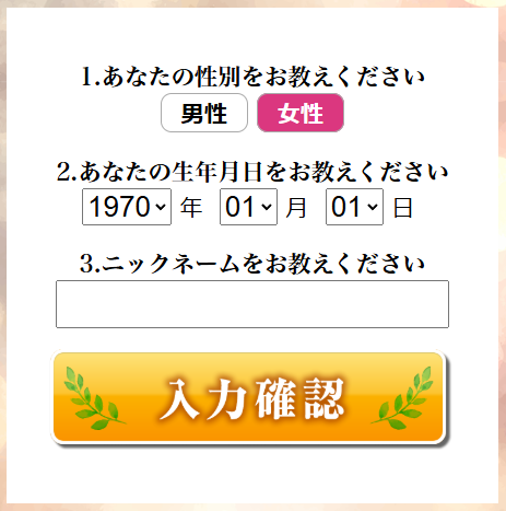 性別・生年月日・名前を入力、